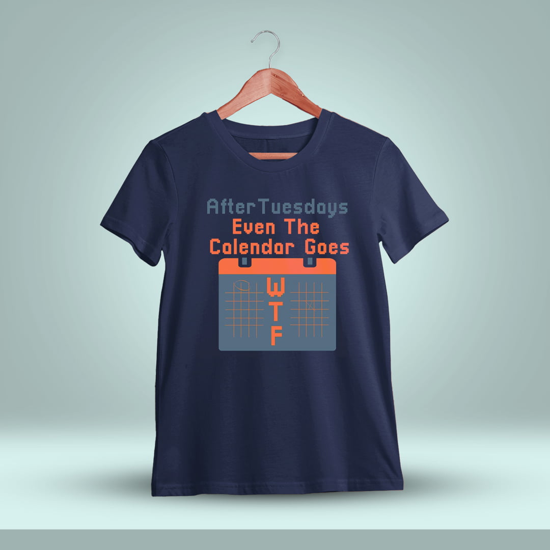 Add humor to your wardrobe with our “After Tuesdays Even The Calendar Goes WTF” T-shirt. Perfect for those who relate to midweek madness.