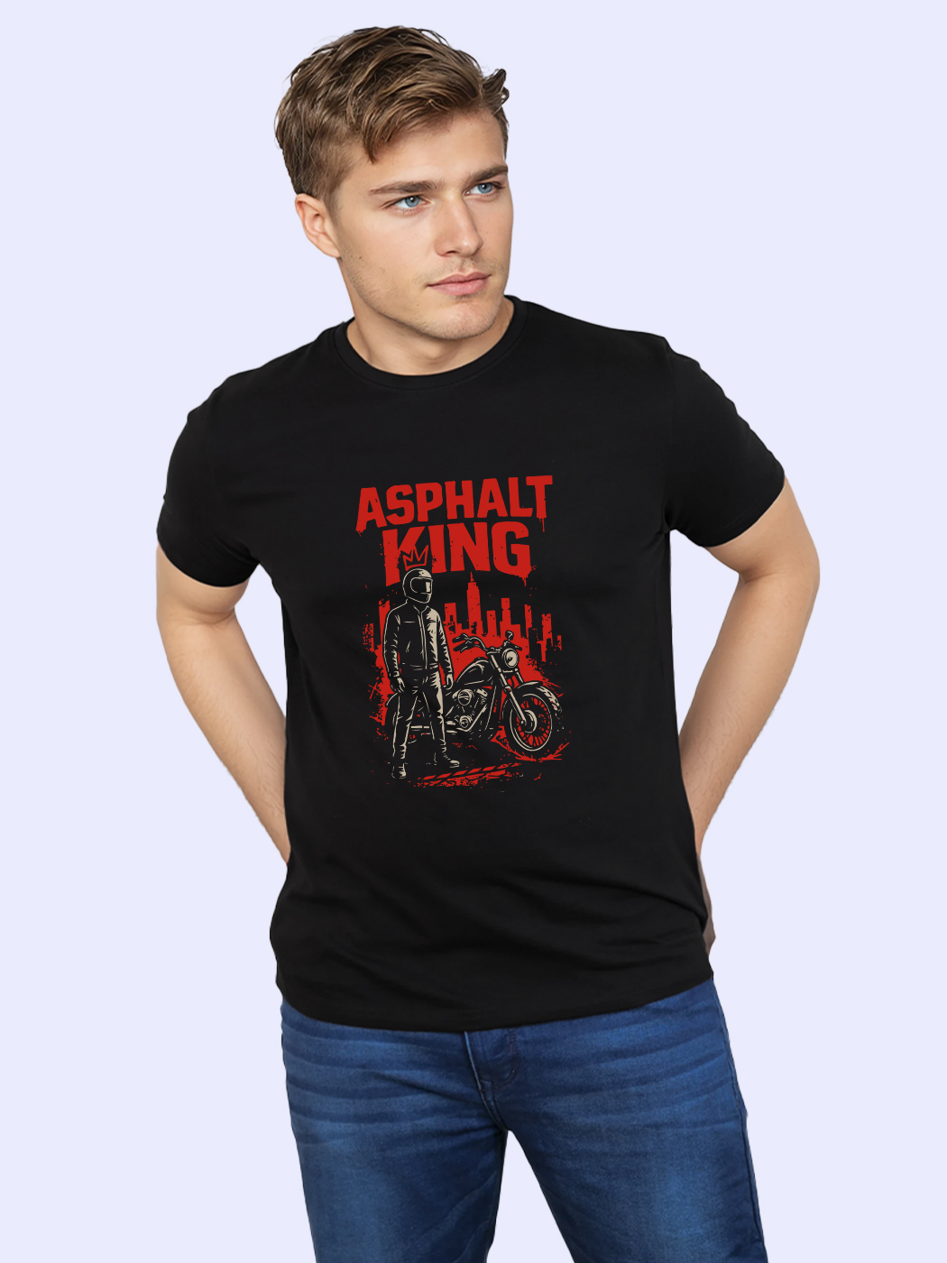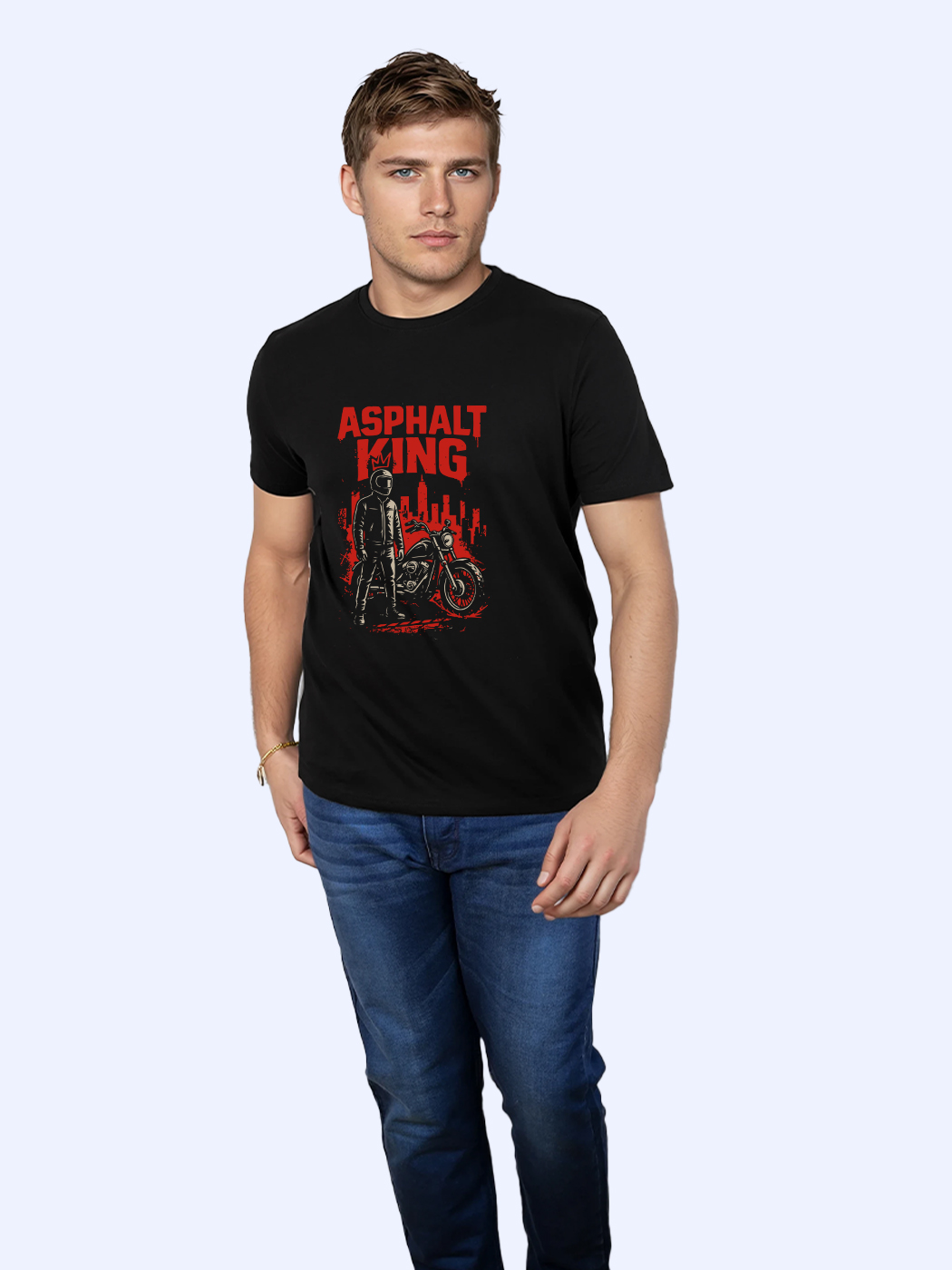 Bold asphalt-inspired half sleeve T-shirt for men, perfect for bikers and streetwear lovers seeking a rugged yet stylish statement piece.