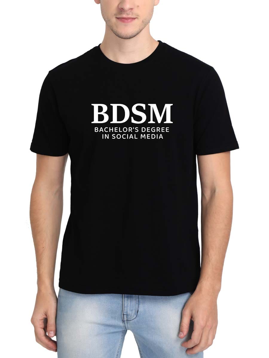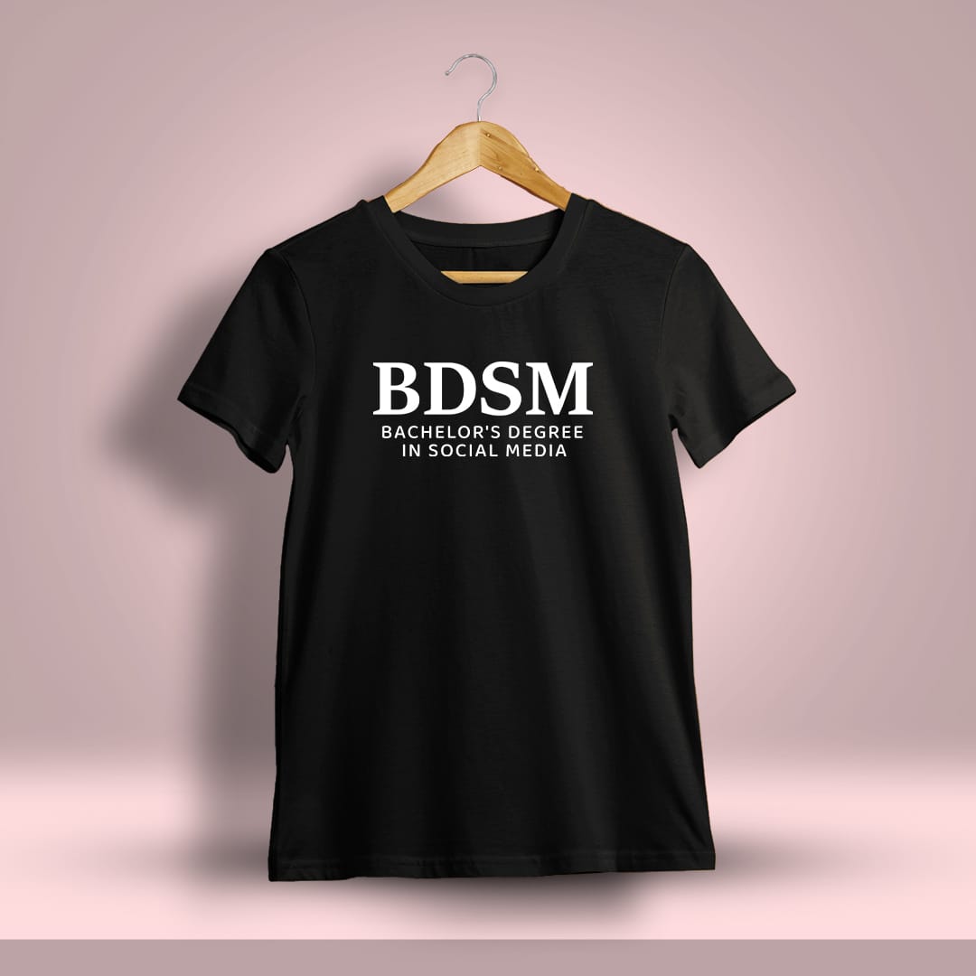 Show off your degree in digital domination with this “BDSM – Bachelor’s Degree in Social Media” printed t-shirt. A fun, cheeky nod to modern online culture.
