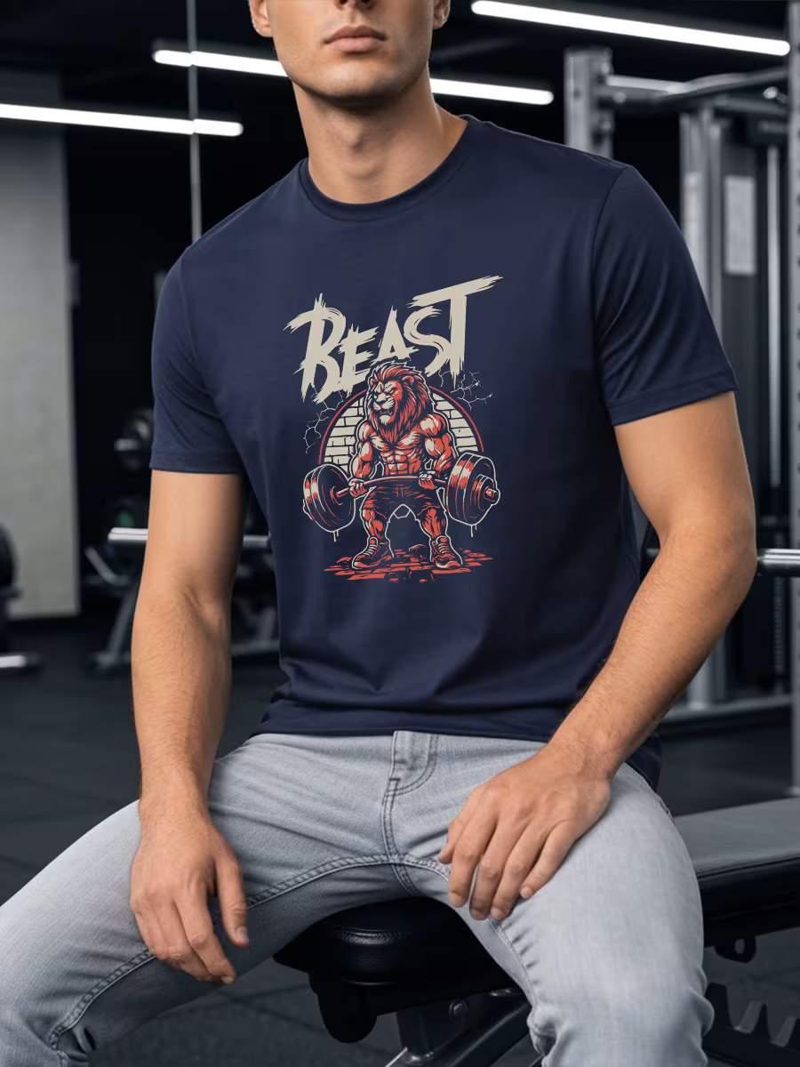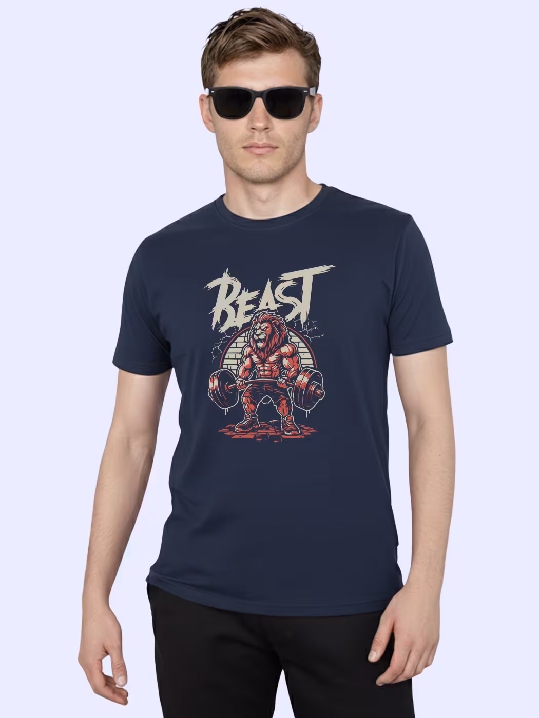 Beast T-shirt unleashes raw power. Half sleeve, durable fabric, and striking design embody strength and resilience. Perfect for workouts and streetwear style.