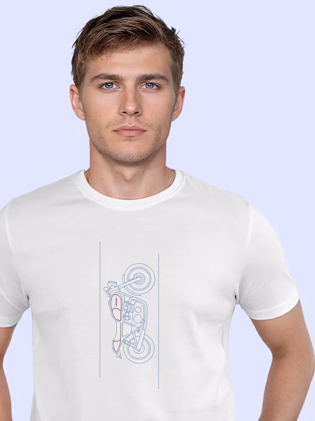 The Bike Minimal Line Art T-Shirt For Men – Half Sleeve blends style and comfort with minimalist motorcycle-inspired graphics, soft cotton fabric, and a perfect fit for everyday rides or casual adventures.