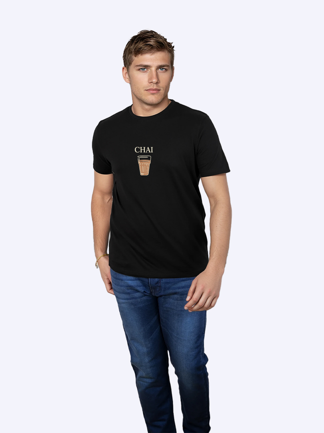 Chai Printed T-Shirt for men with half sleeves. Perfect blend of comfort and casual style. Ideal for everyday wear, parties, or gifting.