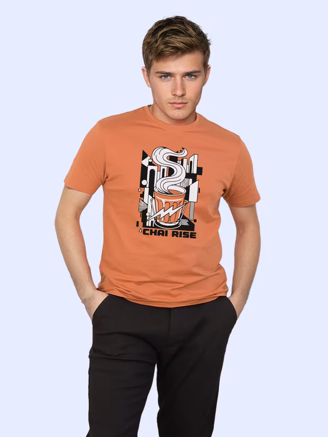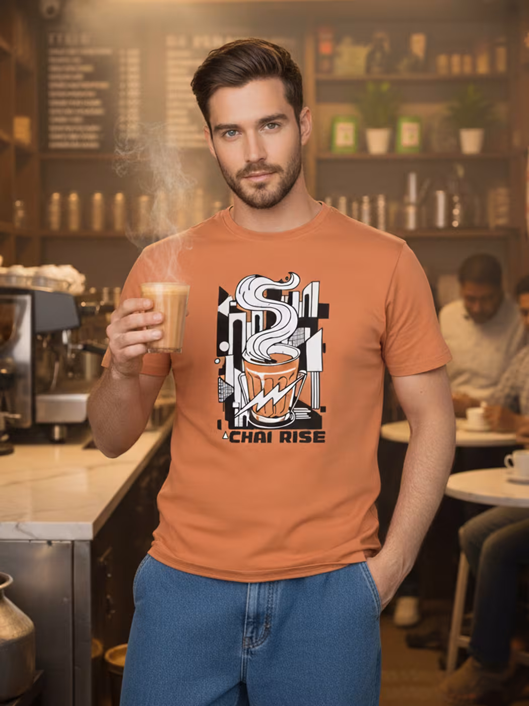 Celebrate your love for chai with this stylish half-sleeve t-shirt, blending comfort and culture, perfect for casual outings and showcasing your tea-loving personality.