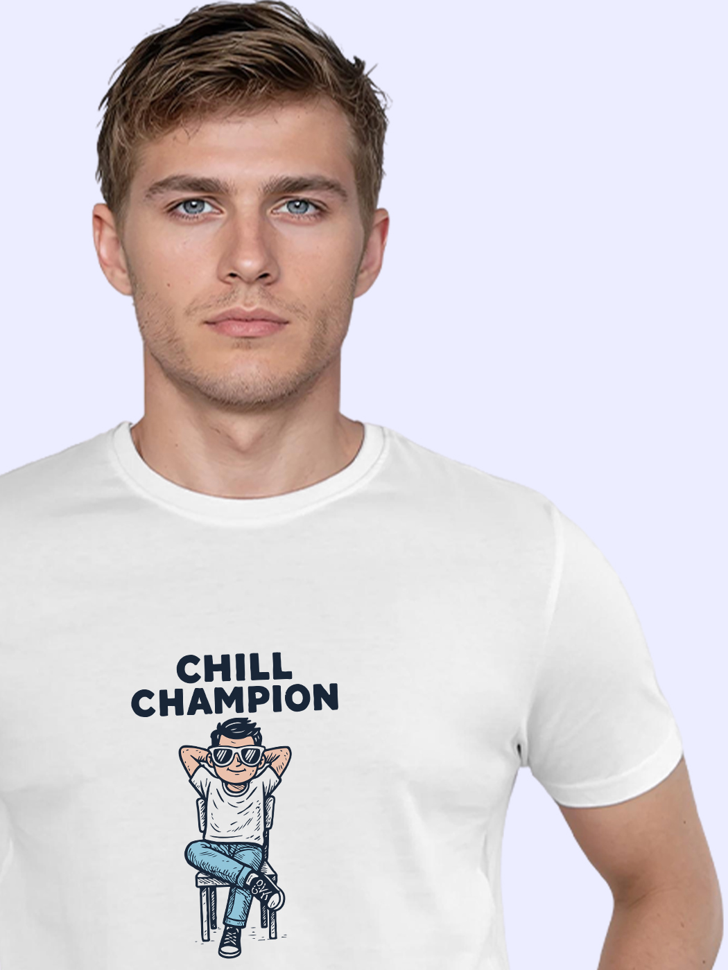 Chill Champion T-Shirt for men with half sleeves. Perfect blend of comfort and casual style. Ideal for everyday wear, parties, or gifting.
