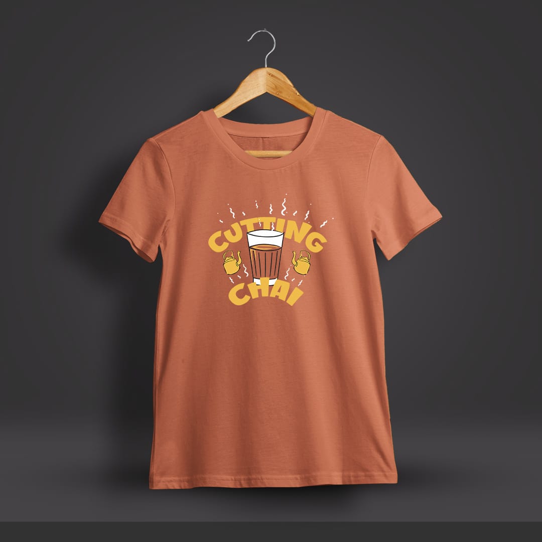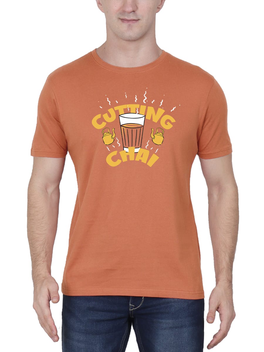 Cutting Chai Printed T-Shirt is a fun and quirky tee for tea lovers, featuring a creative chai-inspired design on soft fabric, perfect for casual, everyday wear.