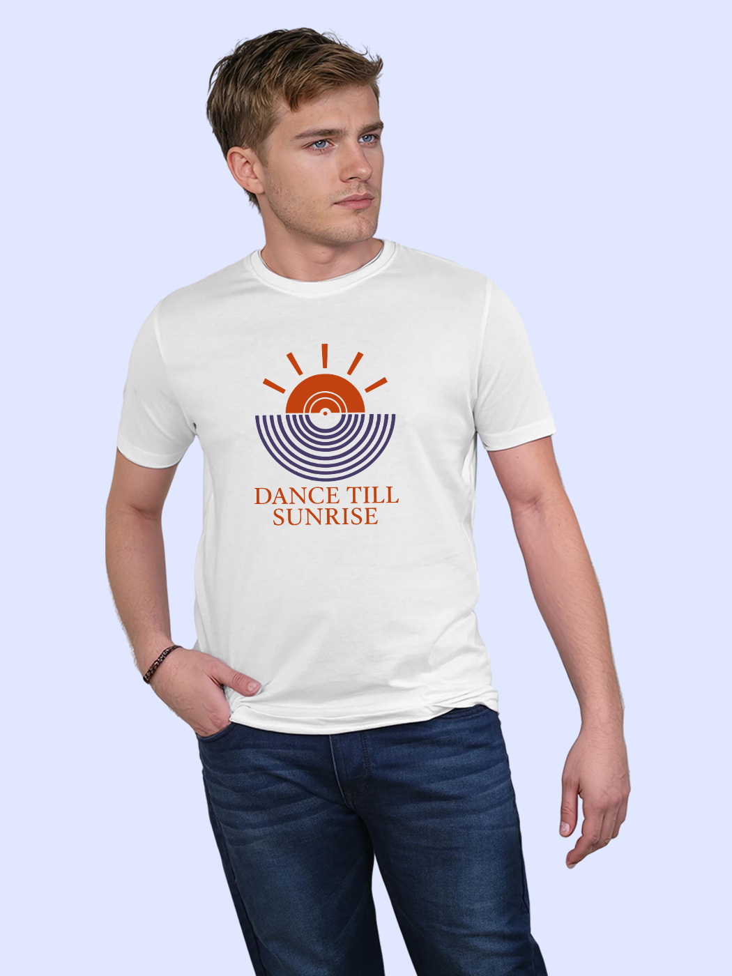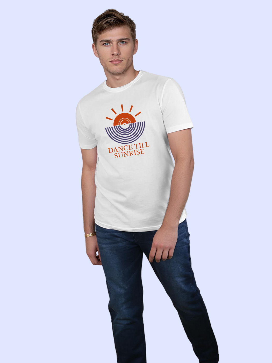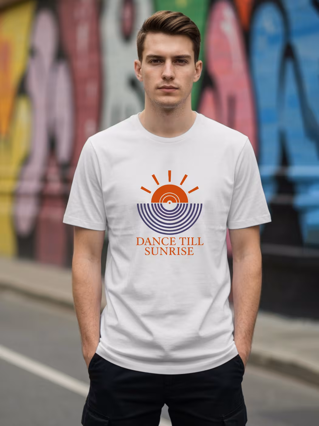 Dance till sunrise in this vibrant half sleeve tee. Designed for music lovers who live for the beat and energy of nightlife.