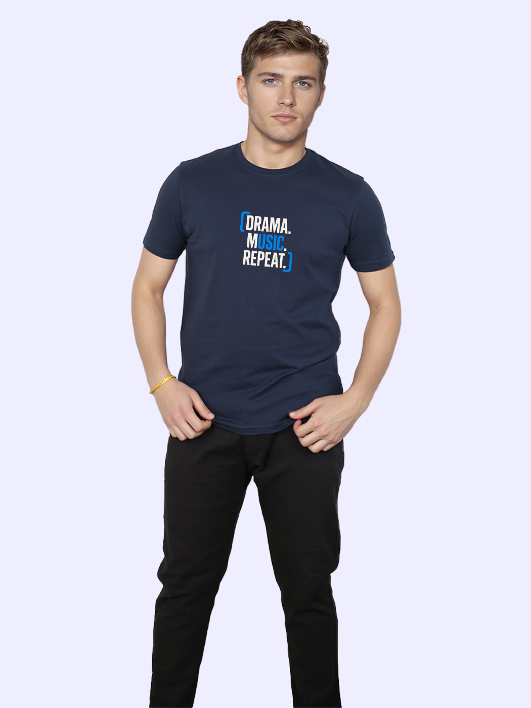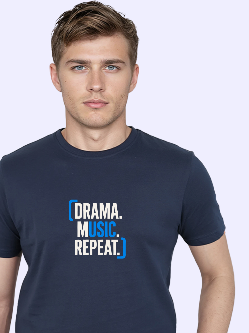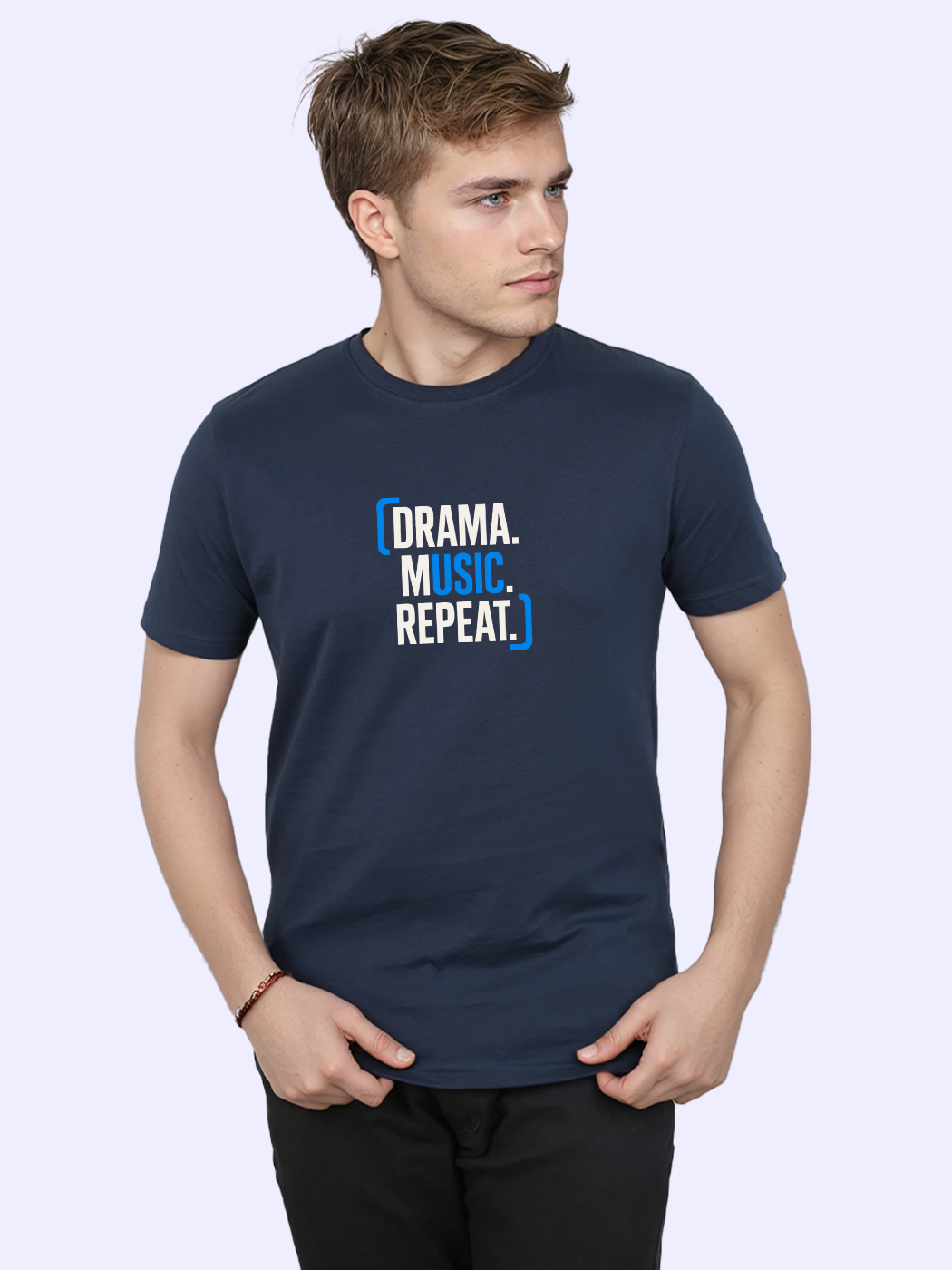 Drama, music, repeat—this half sleeve tee captures life’s ultimate rhythm. Ideal for men who embrace storytelling, rhythm, and expressive fashion.