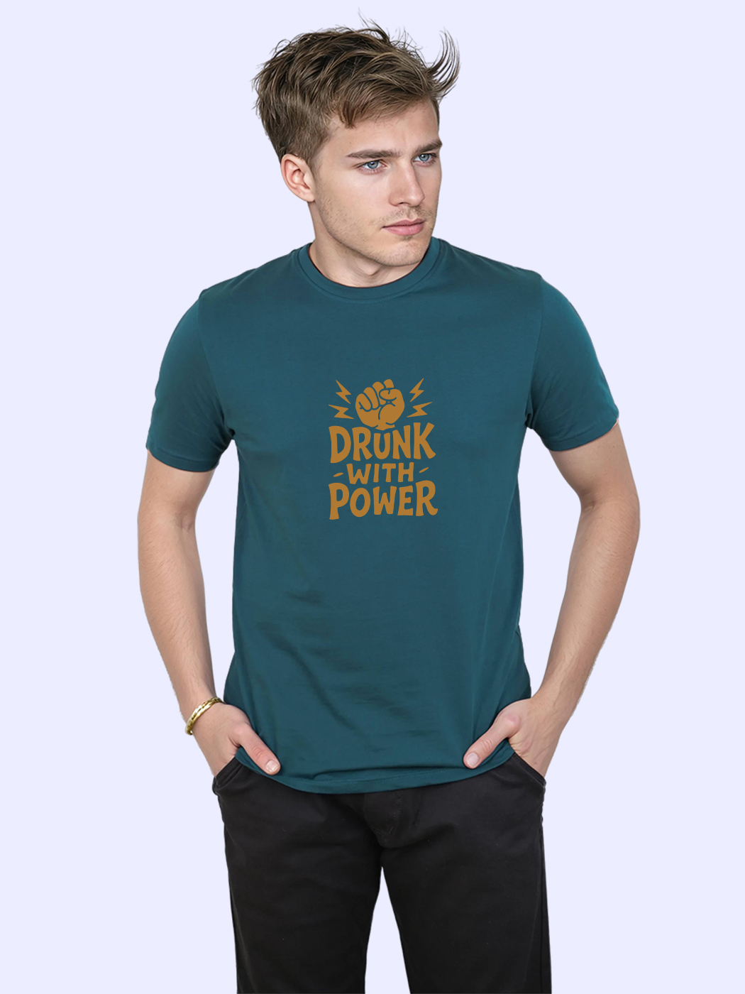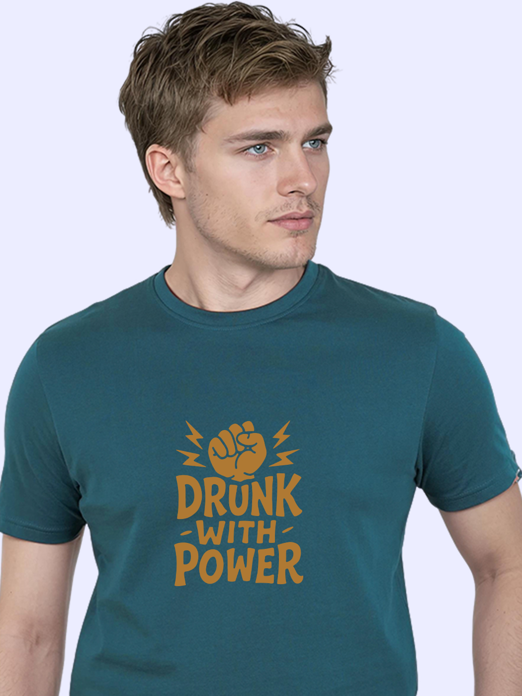 Drunk With Power T-Shirt for men with half sleeves. Perfect blend of comfort and casual style. Ideal for everyday wear, parties, or gifting.