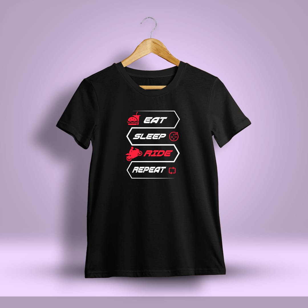 Eat Sleep Ride Repeat” is the perfect t-shirt for those who live for the thrill of the ride. A bold reminder to fuel up, rest, and keep chasing adventure, again and again.