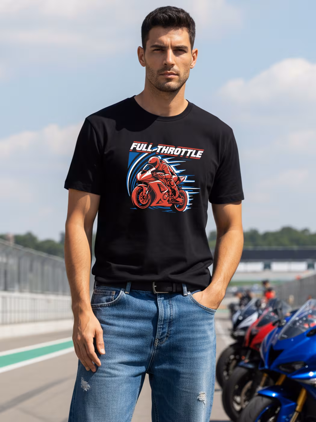 The Full Throttle Bike T-Shirt For Men – Half Sleeve blends style and comfort with minimalist motorcycle-inspired graphics, soft cotton fabric, and a perfect fit for everyday rides or casual adventures.