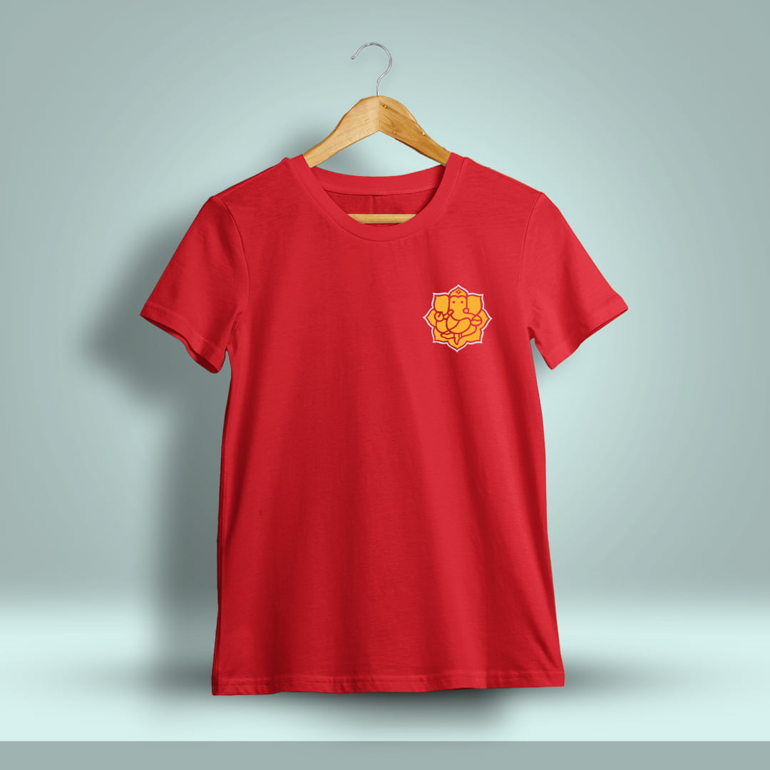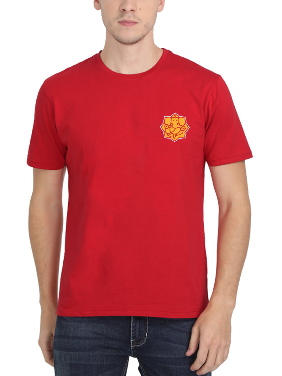 The Ganesha Pocket Print Ganpati T-Shirt features a subtle yet stylish Ganesha design on the pocket, blending tradition with modern fashion for everyday wear.