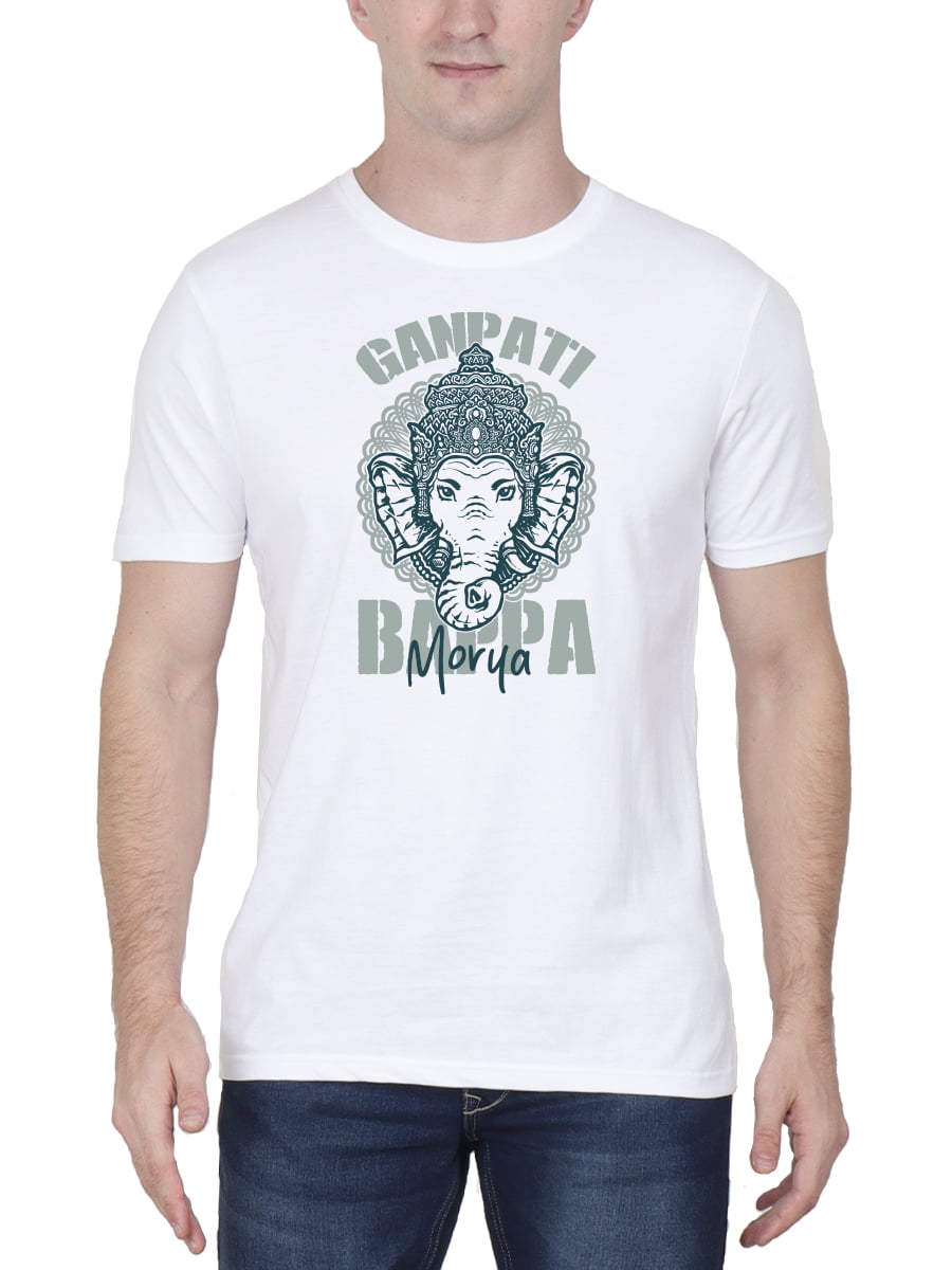 Ganpati Bappa Morya White T-Shirt showcases a vibrant Lord Ganesh design on crisp white fabric, perfect for blending tradition with a fresh, modern look.