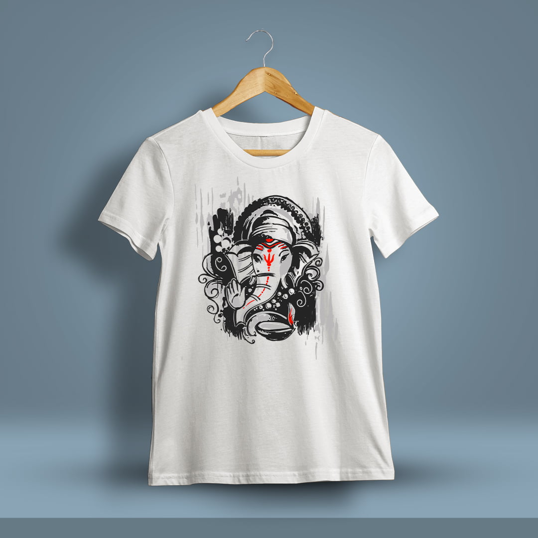 Ganpati Graphic T-Shirt features a striking Lord Ganesh design on soft, comfortable fabric, ideal for celebrating tradition with a contemporary twist.