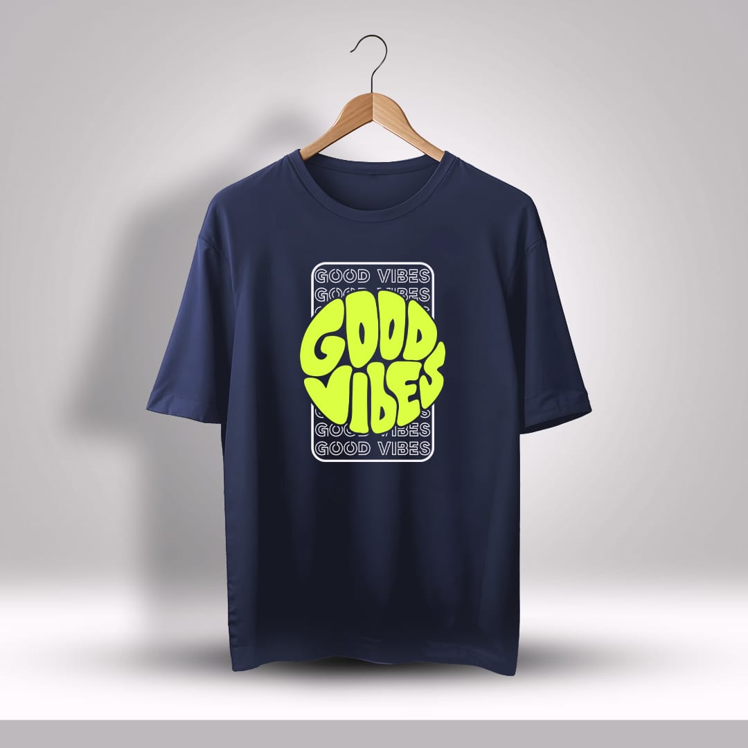 The Good Vibes Oversized Printed T-Shirt showcases bold, uplifting text on premium soft fabric, combining positivity, comfort, and style for everyday wear.