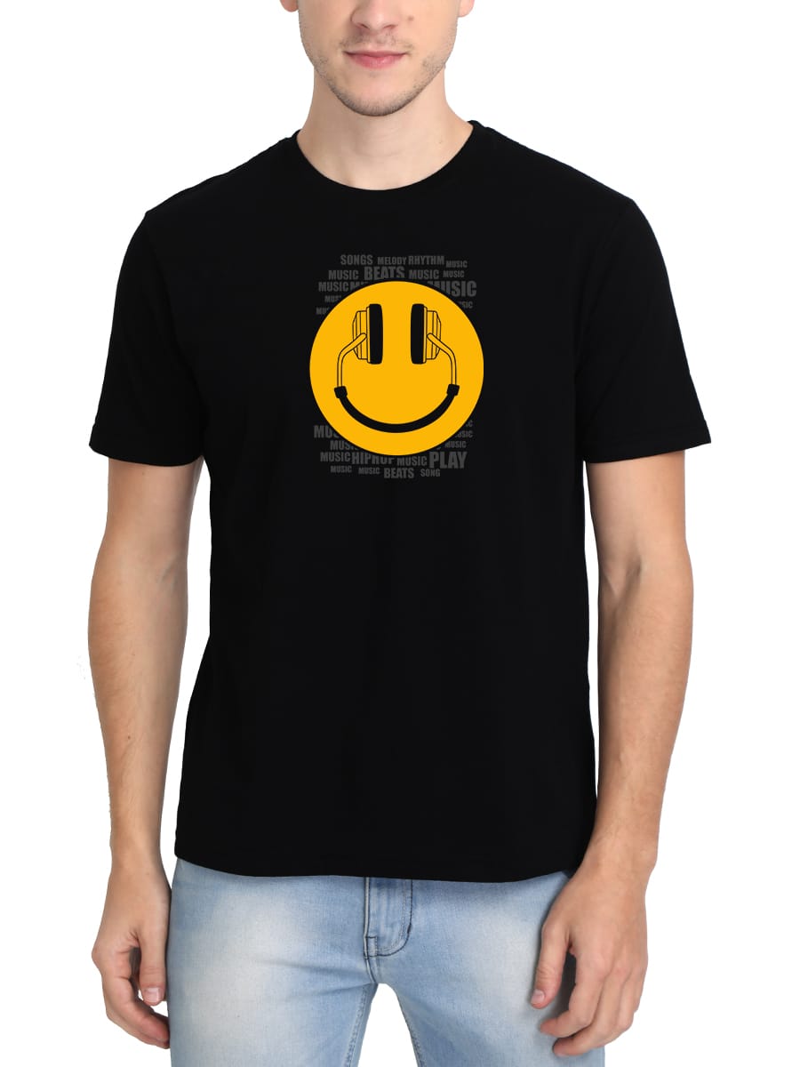 Happy Music Printed T-Shirt captures the joy of melodies with a vibrant design, making it a must-have for music lovers who live in rhythm and harmony.