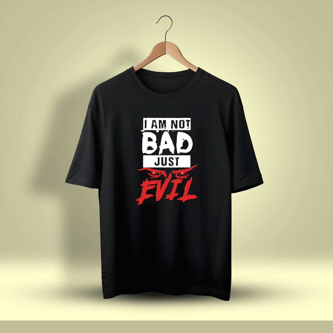 I Am Not Bad Just Evil Oversized T-Shirt delivers a bold statement with edgy style. Perfect for showcasing your dark, rebellious side.