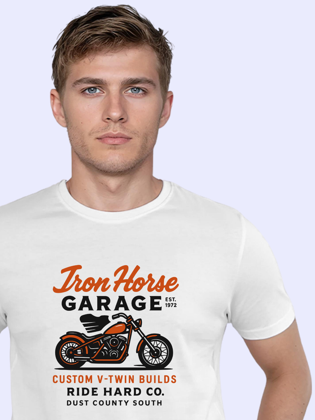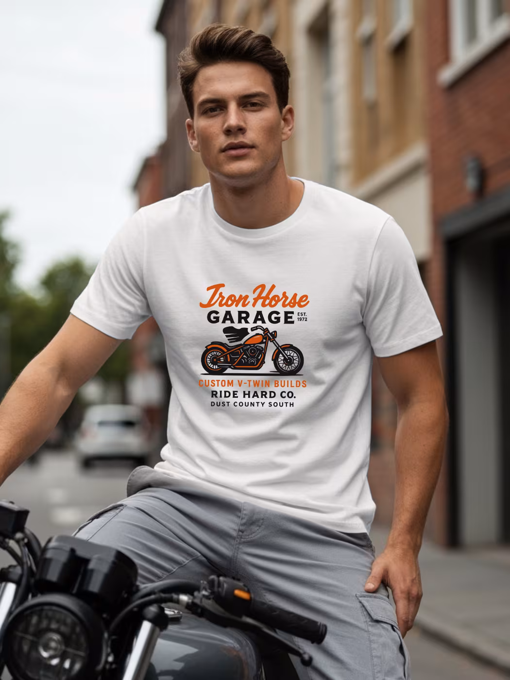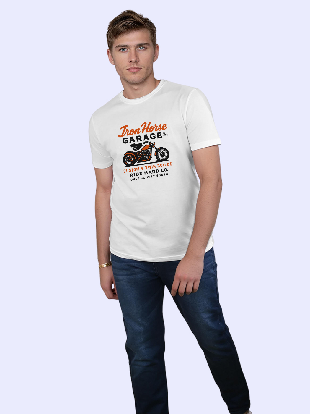 Classic motorcycle-themed half sleeve T-shirt for men, embodying strength, speed, and timeless biker culture.
