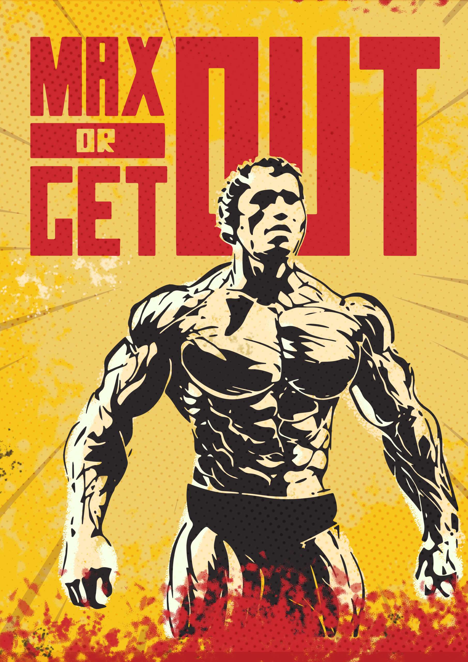 Max or get out: Motivational gym poster urging you to push your limits and achieve your fitness goals. No excuses, just action!