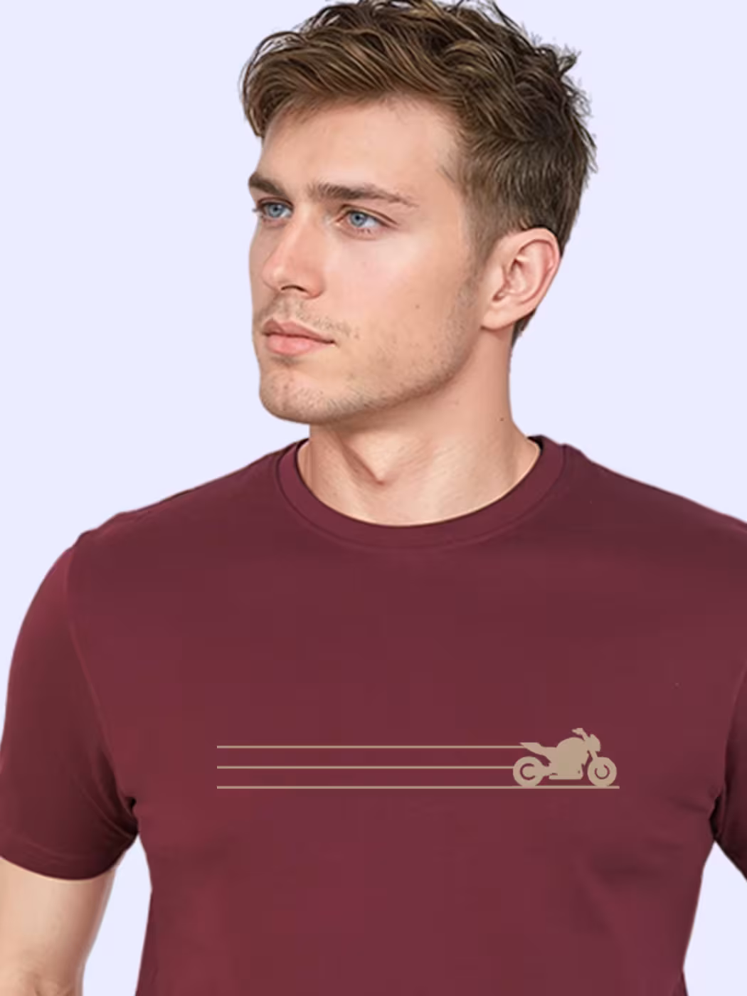 Minimal chest print motorcycle T-shirt, half sleeve, breathable cotton. Perfect blend of subtlety and biker identity, ensuring casual comfort with a stylish edge for everyday outfits.