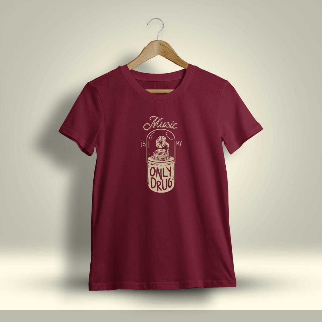 Music Is My Only Drug Printed T-Shirt is a statement piece for true music lovers, crafted from soft cotton with a bold design that celebrates your musical obsession.