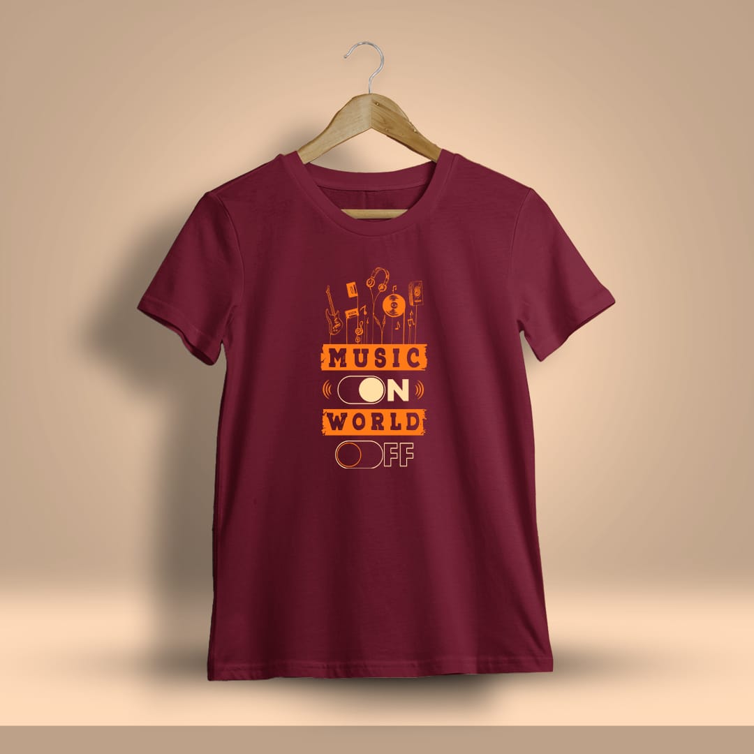 Escape the noise with this ‘Music On, World Off’ t-shirt. Perfect for those moments when you want to immerse yourself in the power of music.
