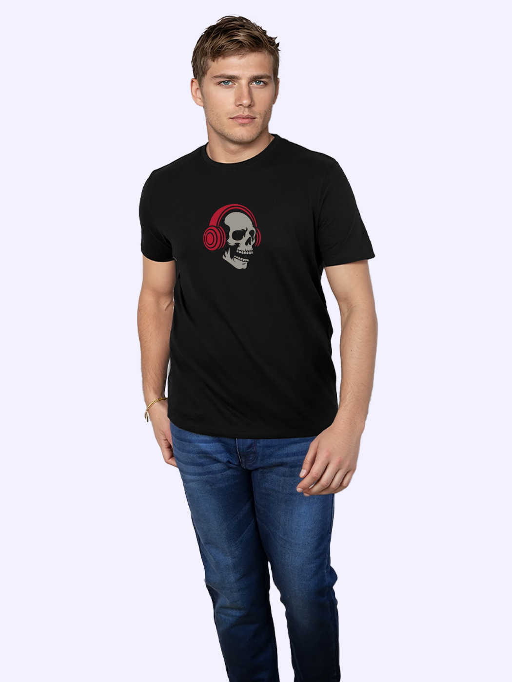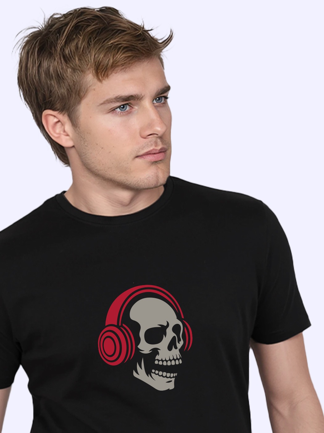 Music Skull Printed T-Shirt for men with half sleeves. Perfect blend of comfort and casual style. Ideal for everyday wear, parties, or gifting.