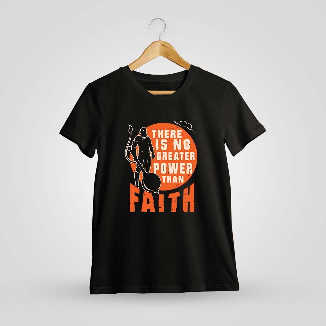 Embody unwavering faith with our “No Greater Power Than Faith Hanuman” T-shirt, symbolizing the strength derived from devotion to the divine.