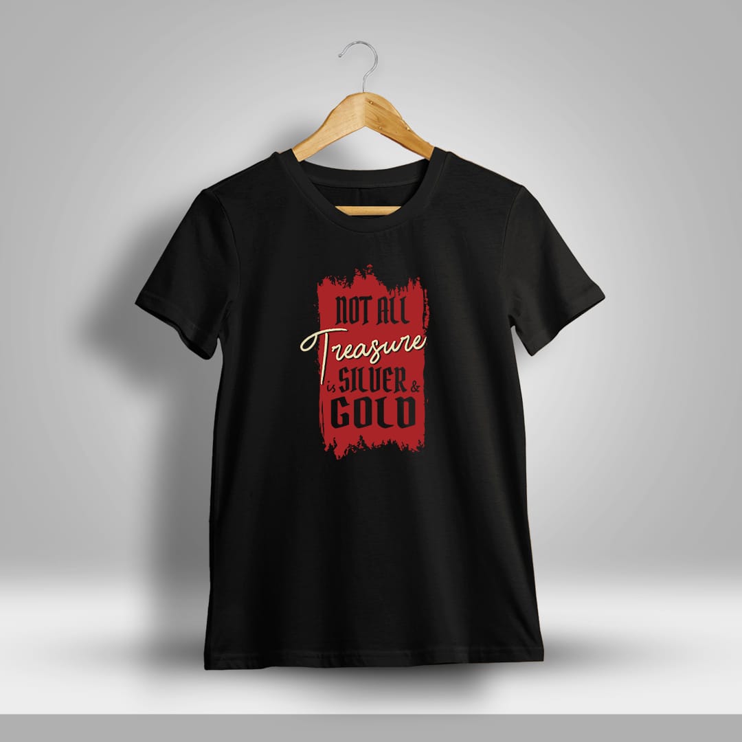 Not All Treasure Is Silver And Gold Quotes Printed T-shirt is a statement of true value, reminding you that the real riches in life go beyond material wealth.