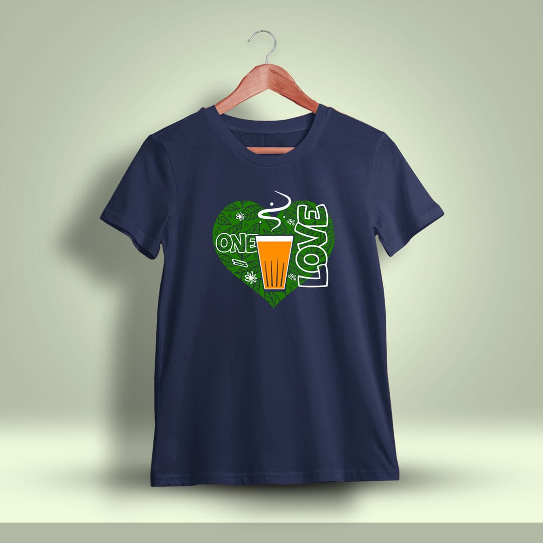 One Love Chai Printed T-Shirt is for those who cherish tea, offering a stylish and comfortable way to express your love for the warmth and tradition of chai.