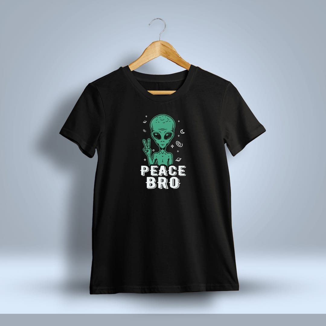 Peace Bro Printed T-Shirt spreads chill vibes with a simple yet bold design, perfect for those who believe in keeping life peaceful and stress-free.