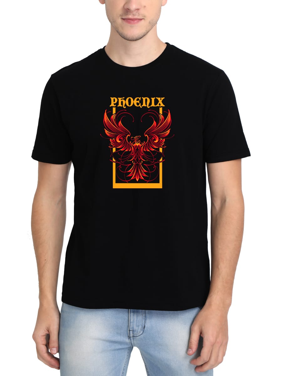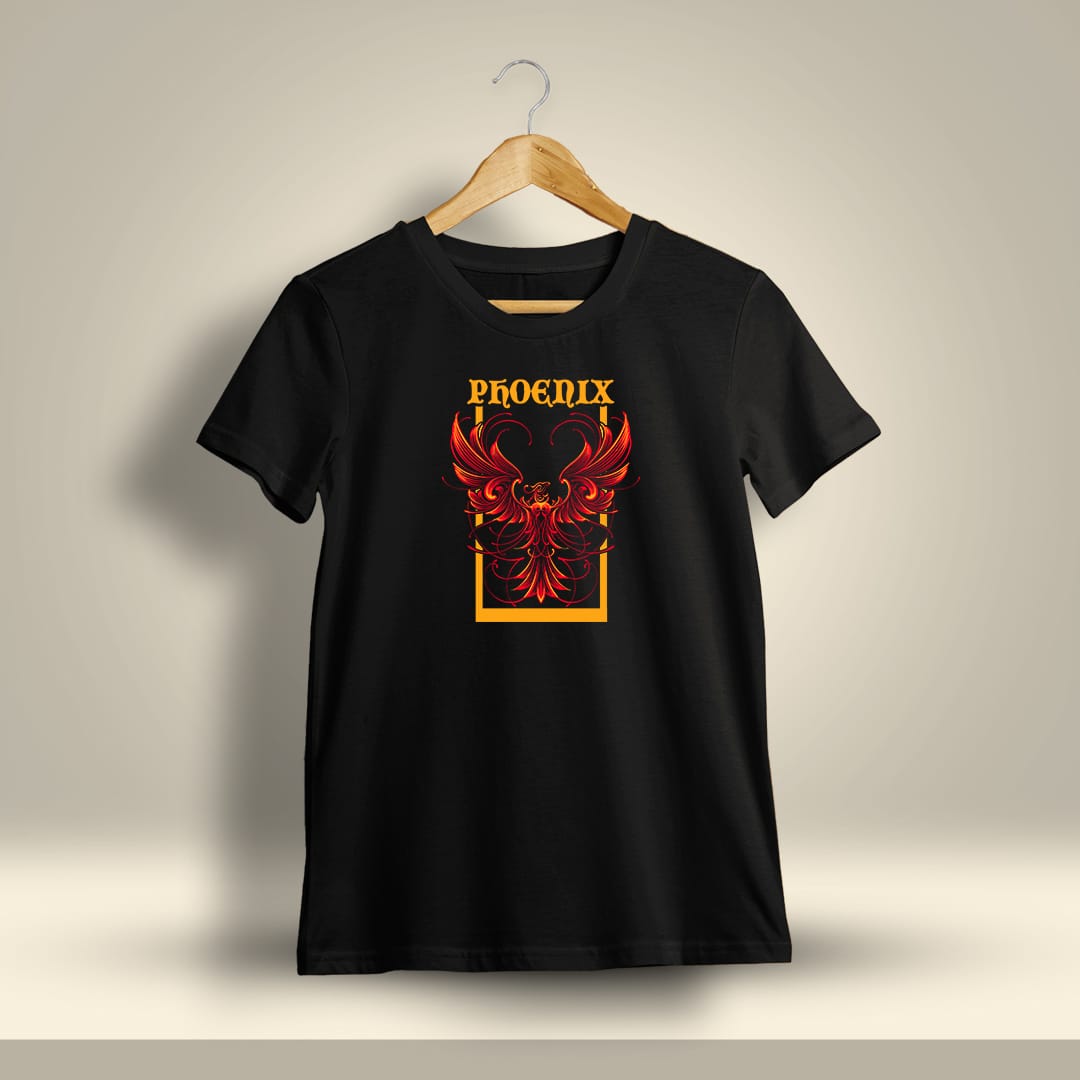 Rise from the ashes in style with the Phoenix Graphic Printed T-Shirt, symbolizing strength, resilience, and rebirth with its bold and fiery design.