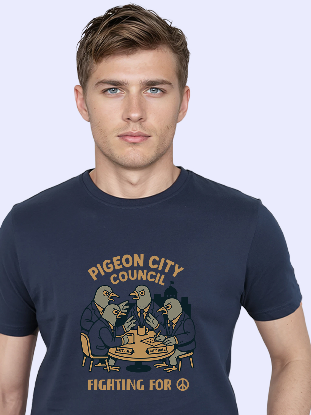Urban street-culture half sleeve T-shirt for men with playful pigeon-inspired design.