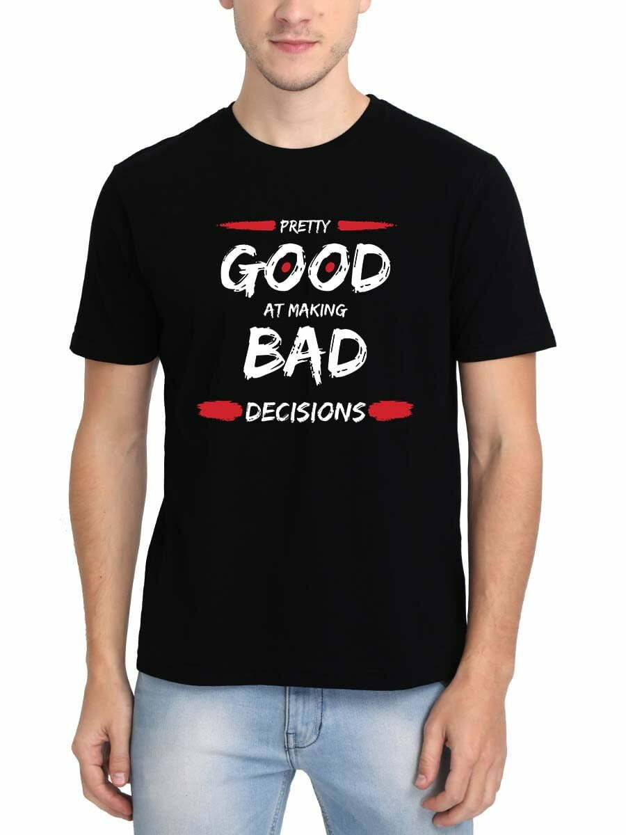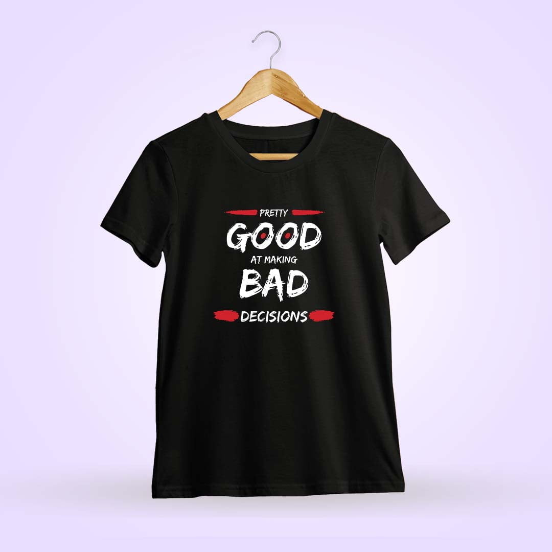 Embrace your spontaneity with our “Pretty Good At Making Bad Decisions” T-shirt. Perfect for those who own up to their adventurous spirit.