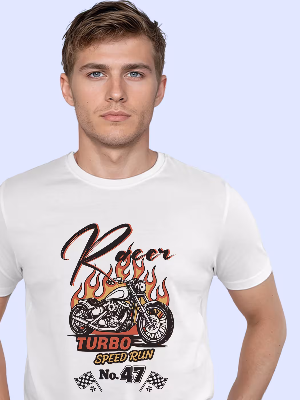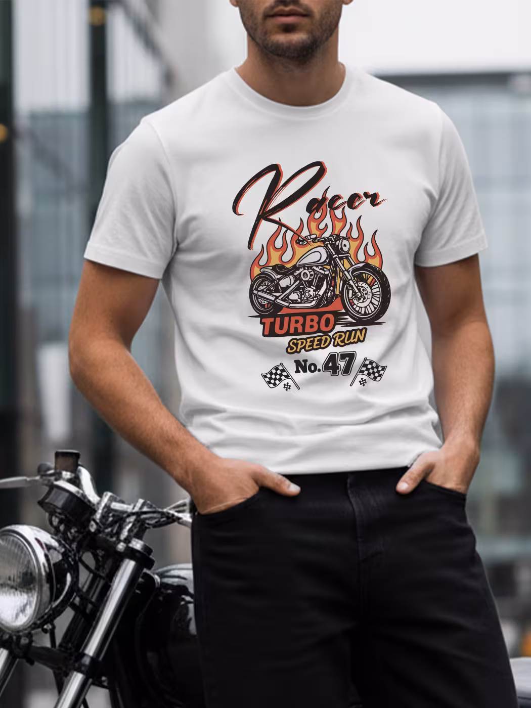 The Racer T-Shirt For Men – Half Sleeve blends style and comfort with minimalist motorcycle-inspired graphics, soft cotton fabric, and a perfect fit for everyday rides or casual adventures.