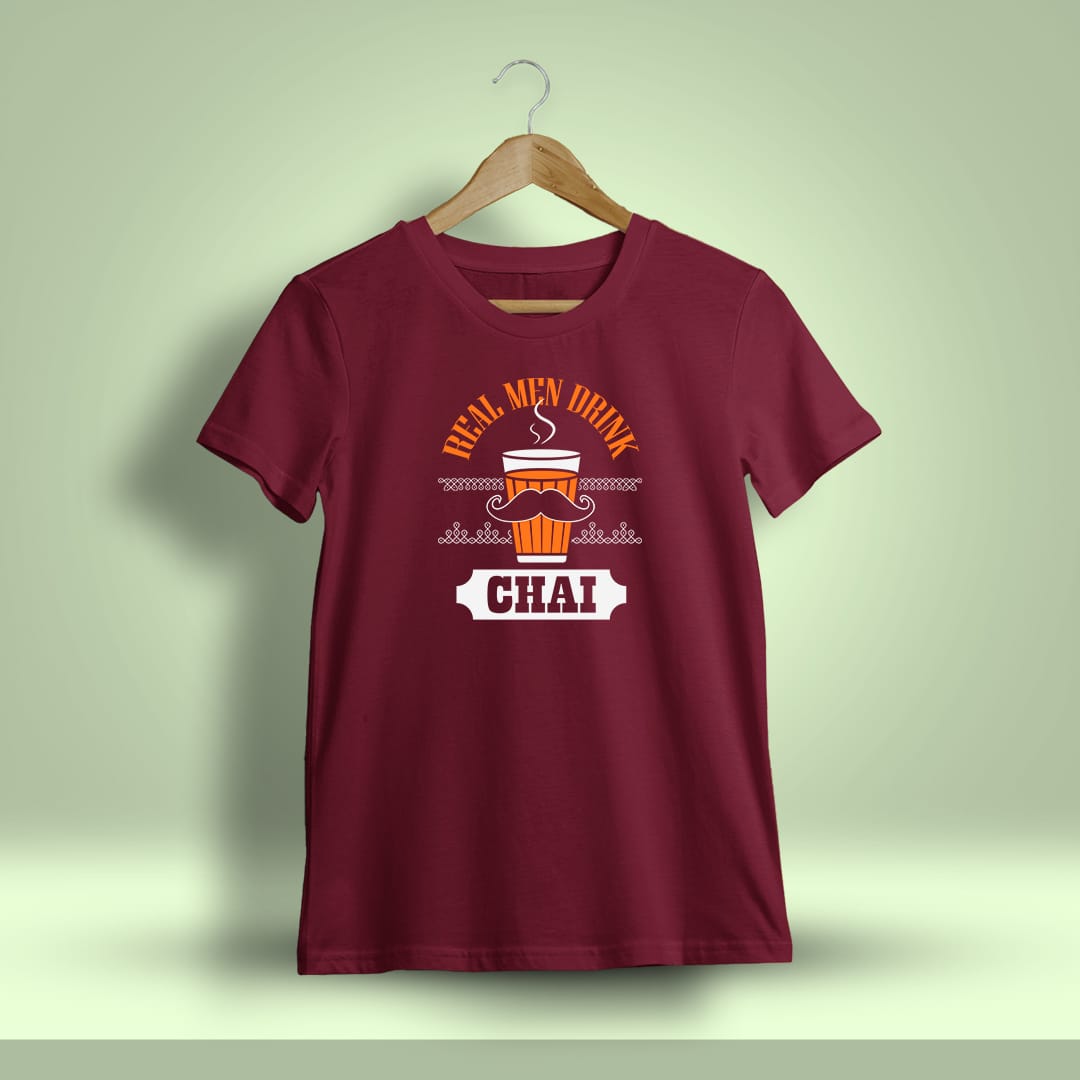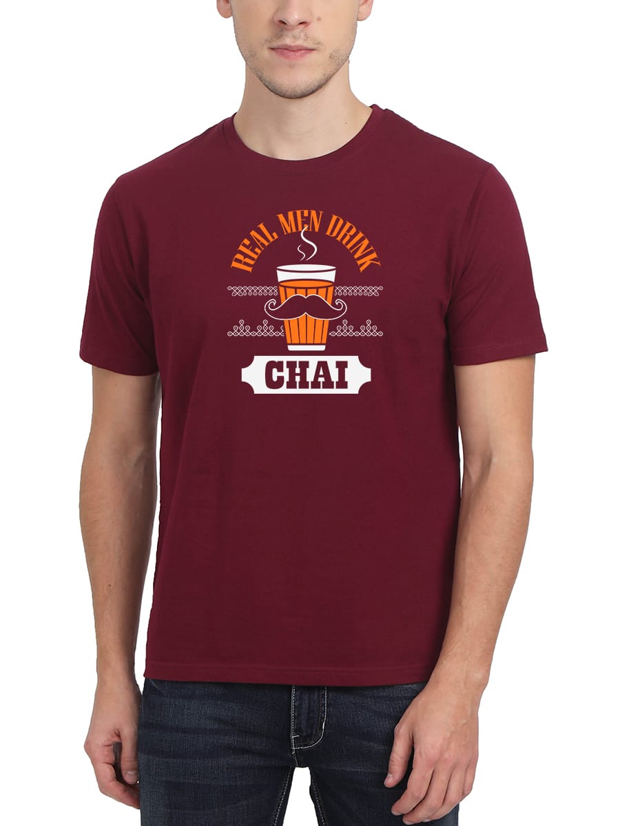 Show your love for chai with this Real Men Drink Chai Printed T-Shirt, a fun and bold statement tee for those who swear by the strong and flavorful brew.