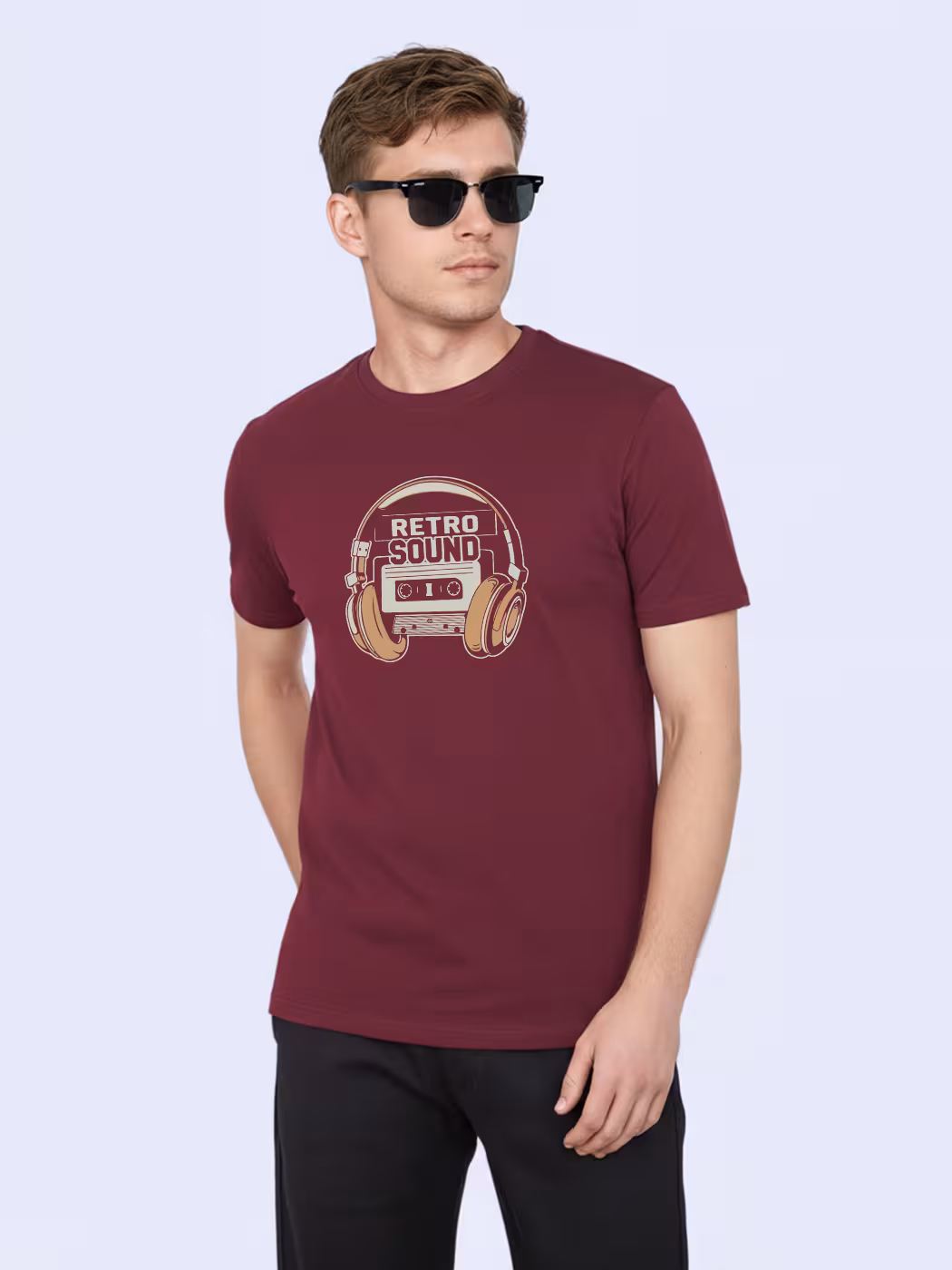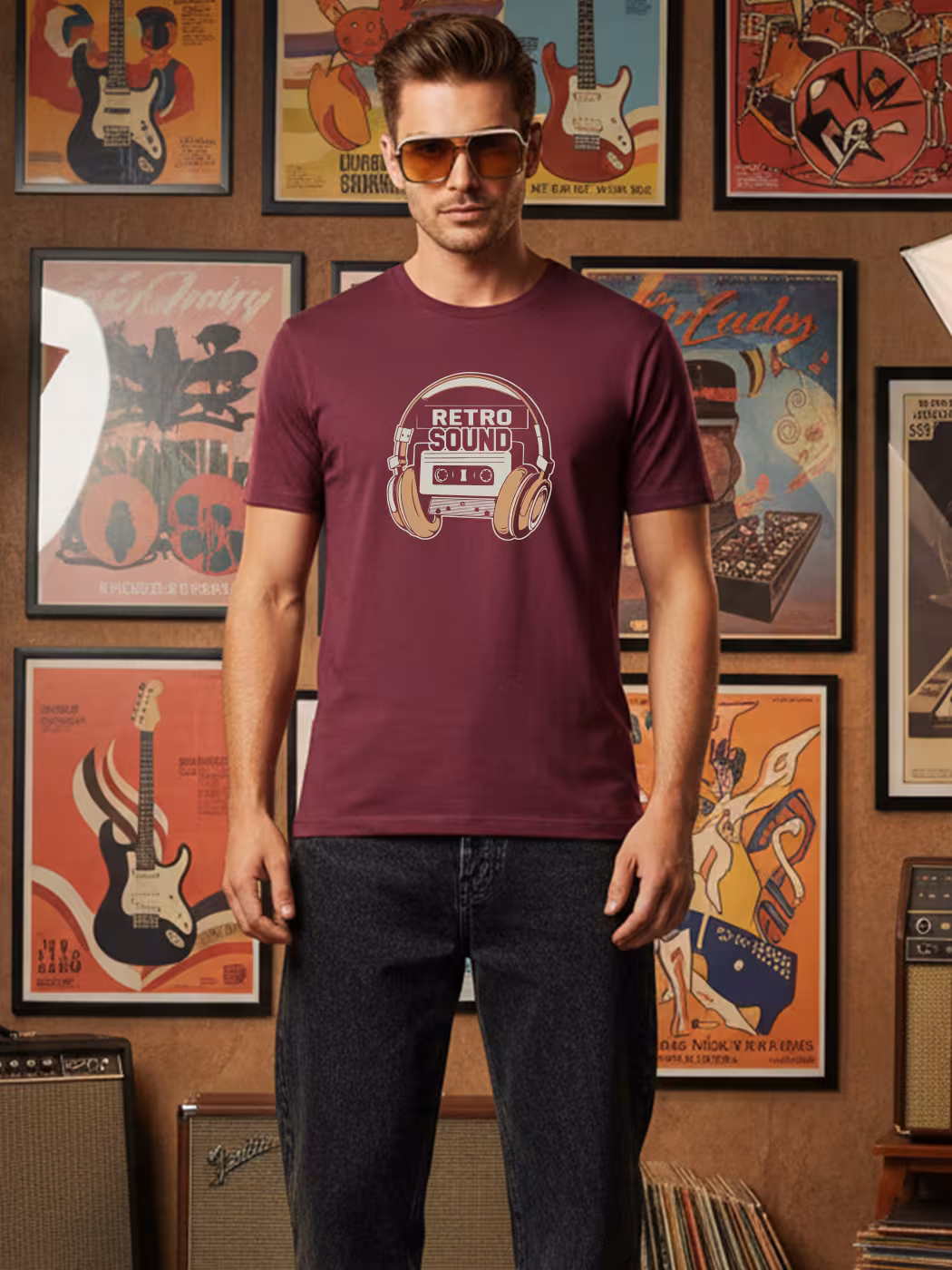 Retro vibes meet modern comfort in the Retro Sound T-shirt, crafted from cotton, half sleeves, a perfect pick for vintage music and style enthusiasts.