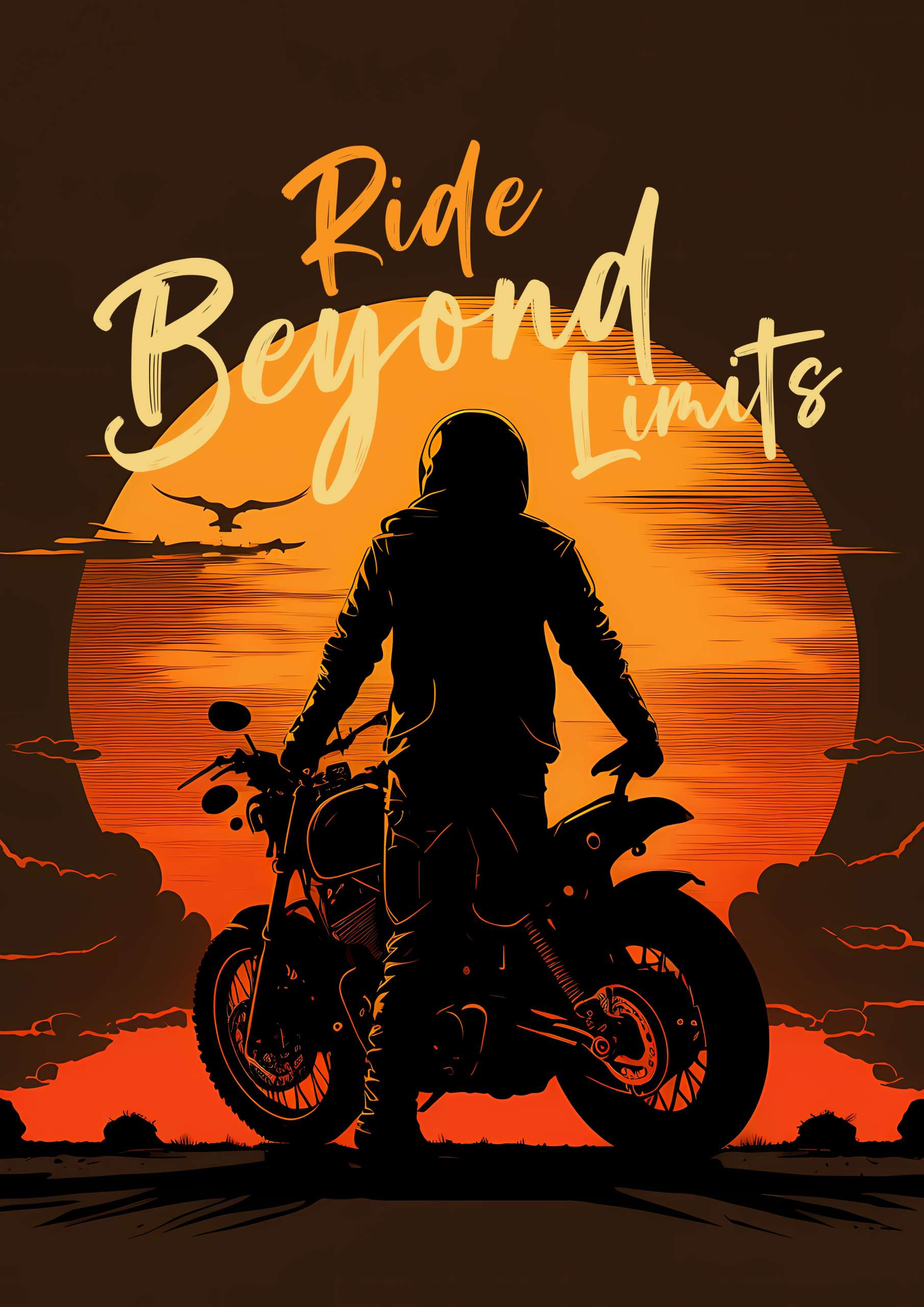 Unleash your potential with our ‘Ride Beyond Limits’ bike poster. Embrace the thrill of pushing boundaries and conquering new challenges on the open road.