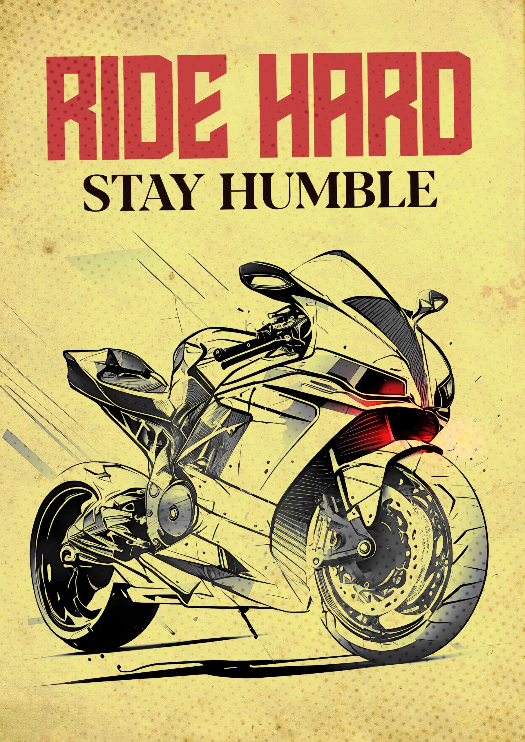 Unleash your biking spirit with our ‘Ride Hard Stay Humble’ poster! Embrace the thrill of the ride while remaining grounded in humility.