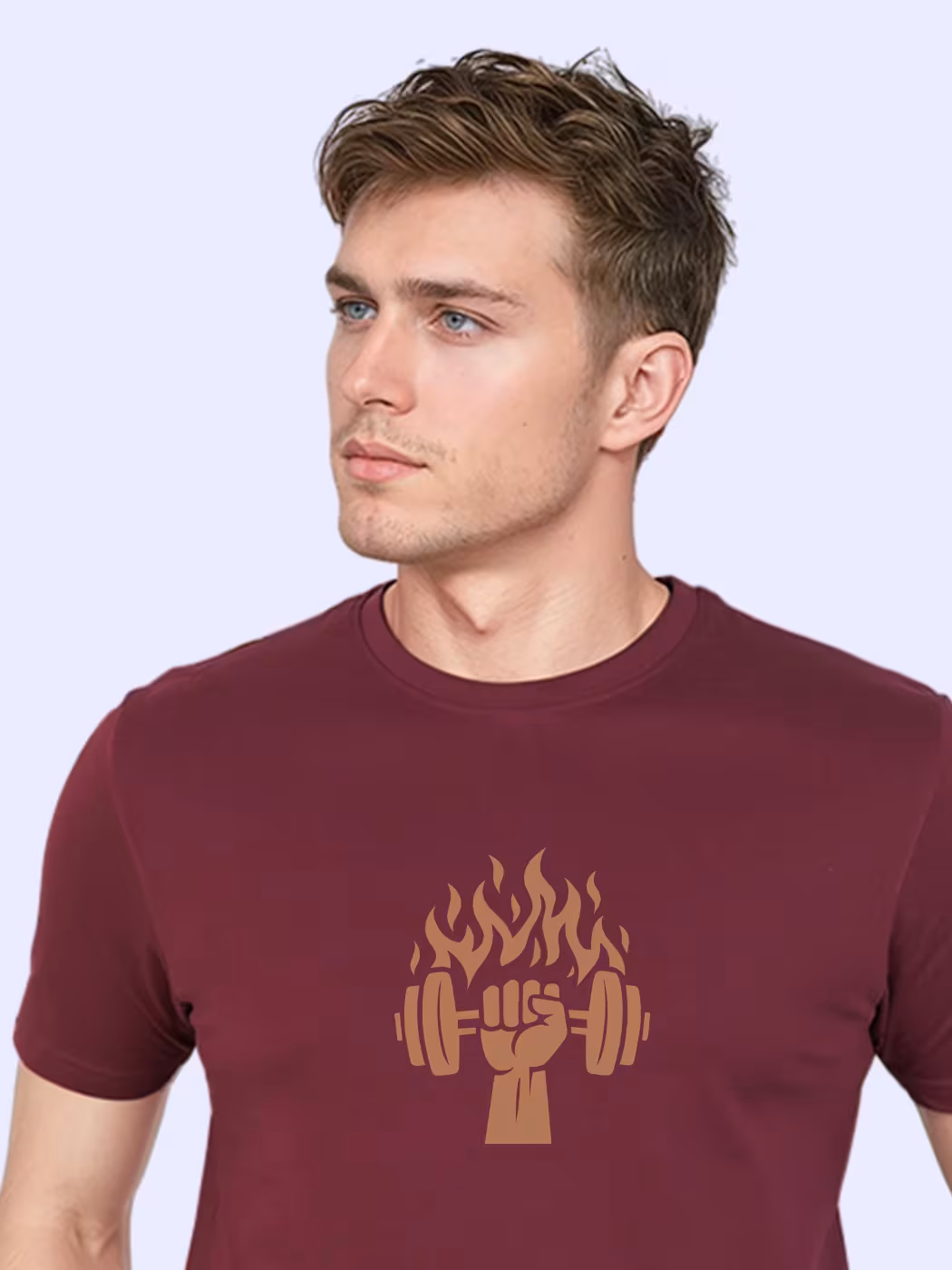 Push boundaries in the Rise of the Dumbbell T-shirt. Half sleeve comfort meets inspiring fitness graphics. Ideal for gym sessions or everyday confidence.