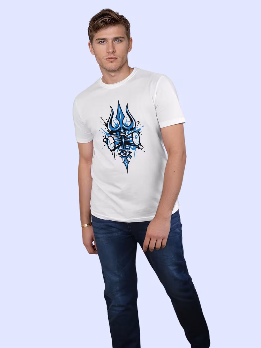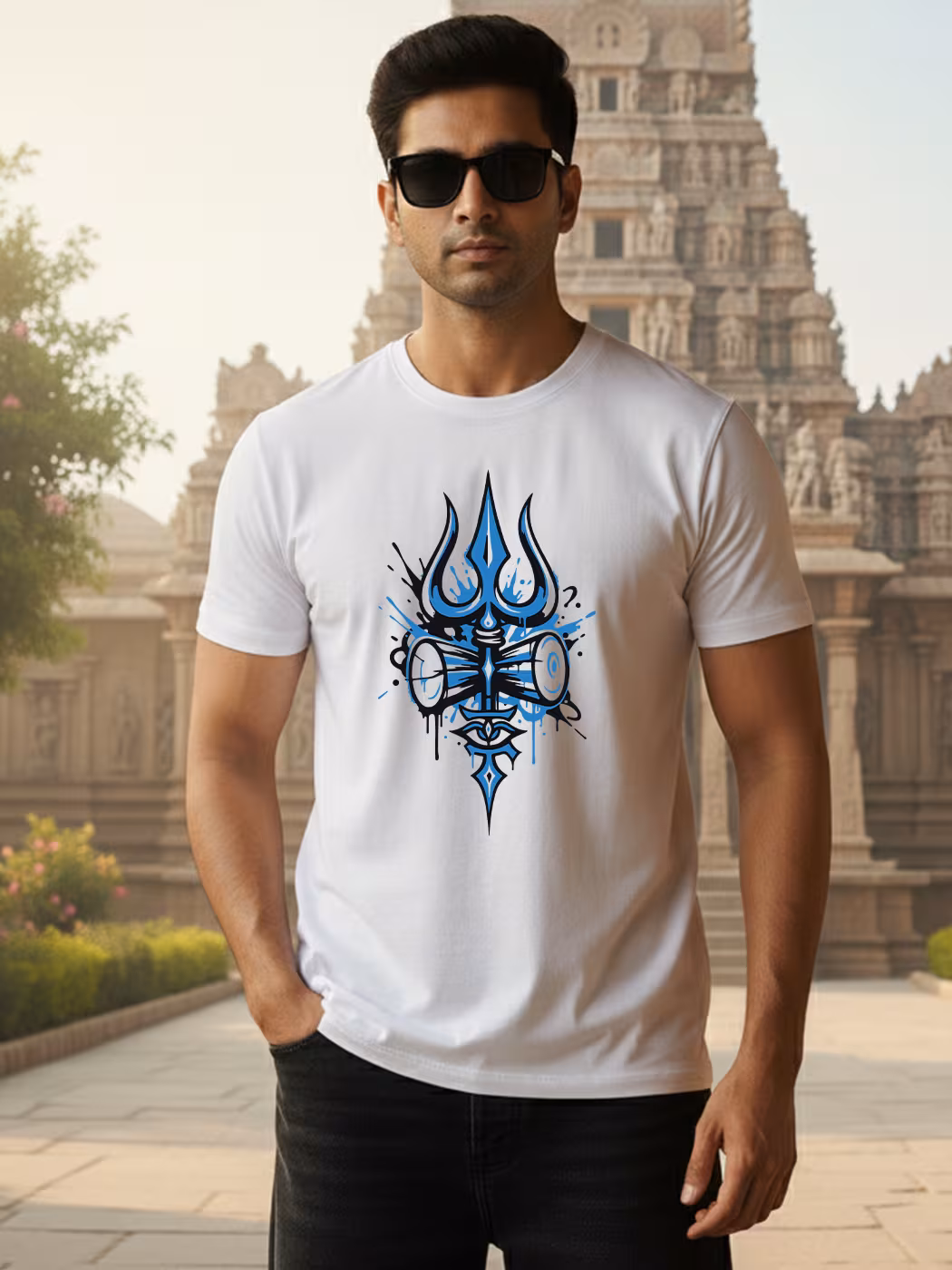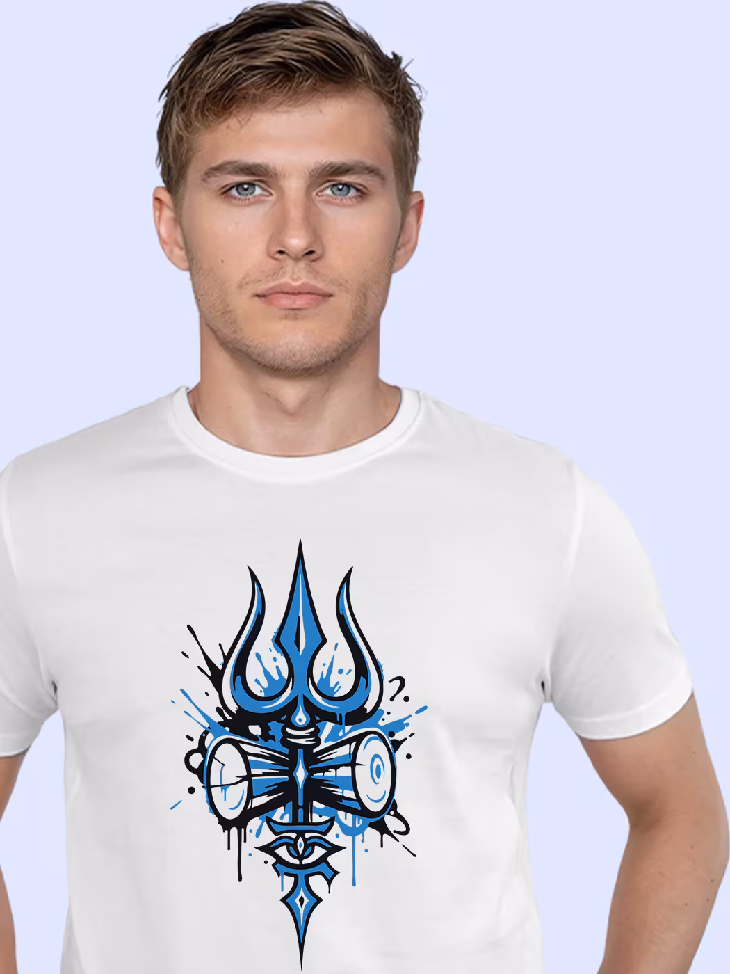 Trishul Art T-Shirt for men showcases divine symbolism in style. Perfect blend of faith, culture, and comfort for those inspired by Mahadev’s strength.