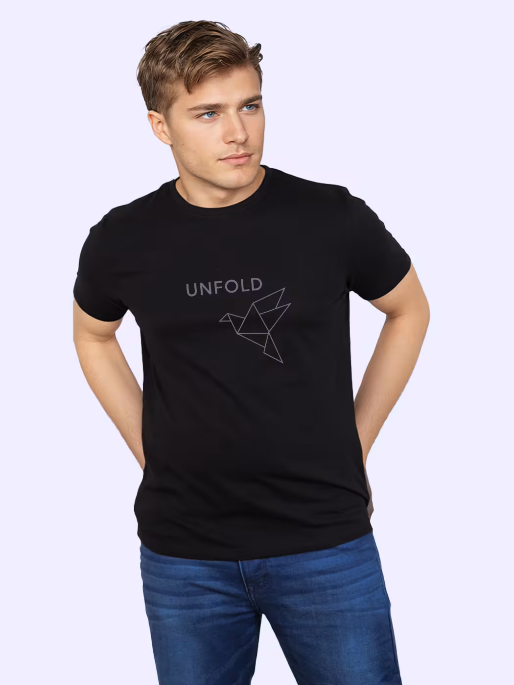 Unfold T-Shirt for men with half sleeves. Perfect blend of comfort and casual style. Ideal for everyday wear, parties, or gifting.